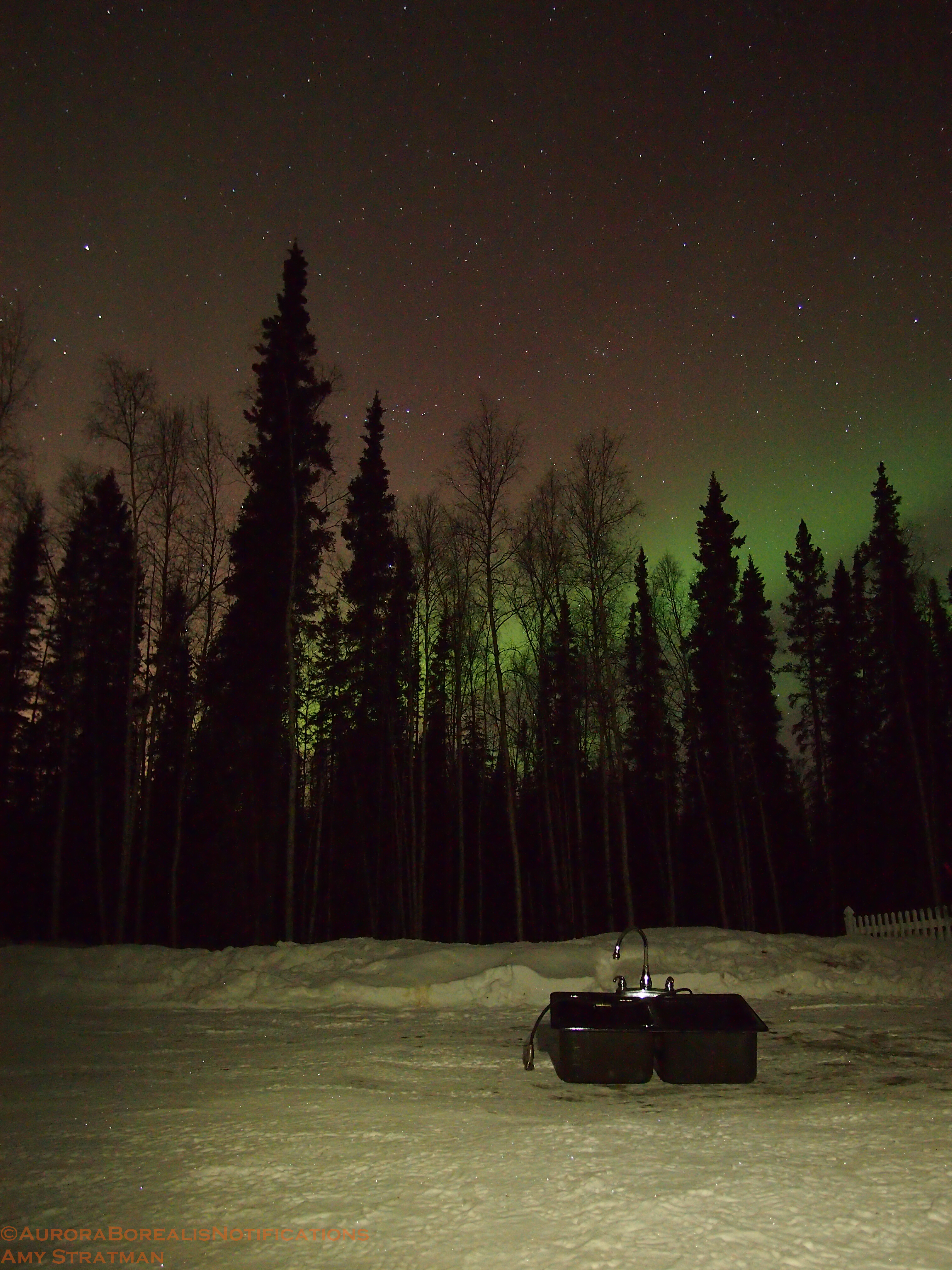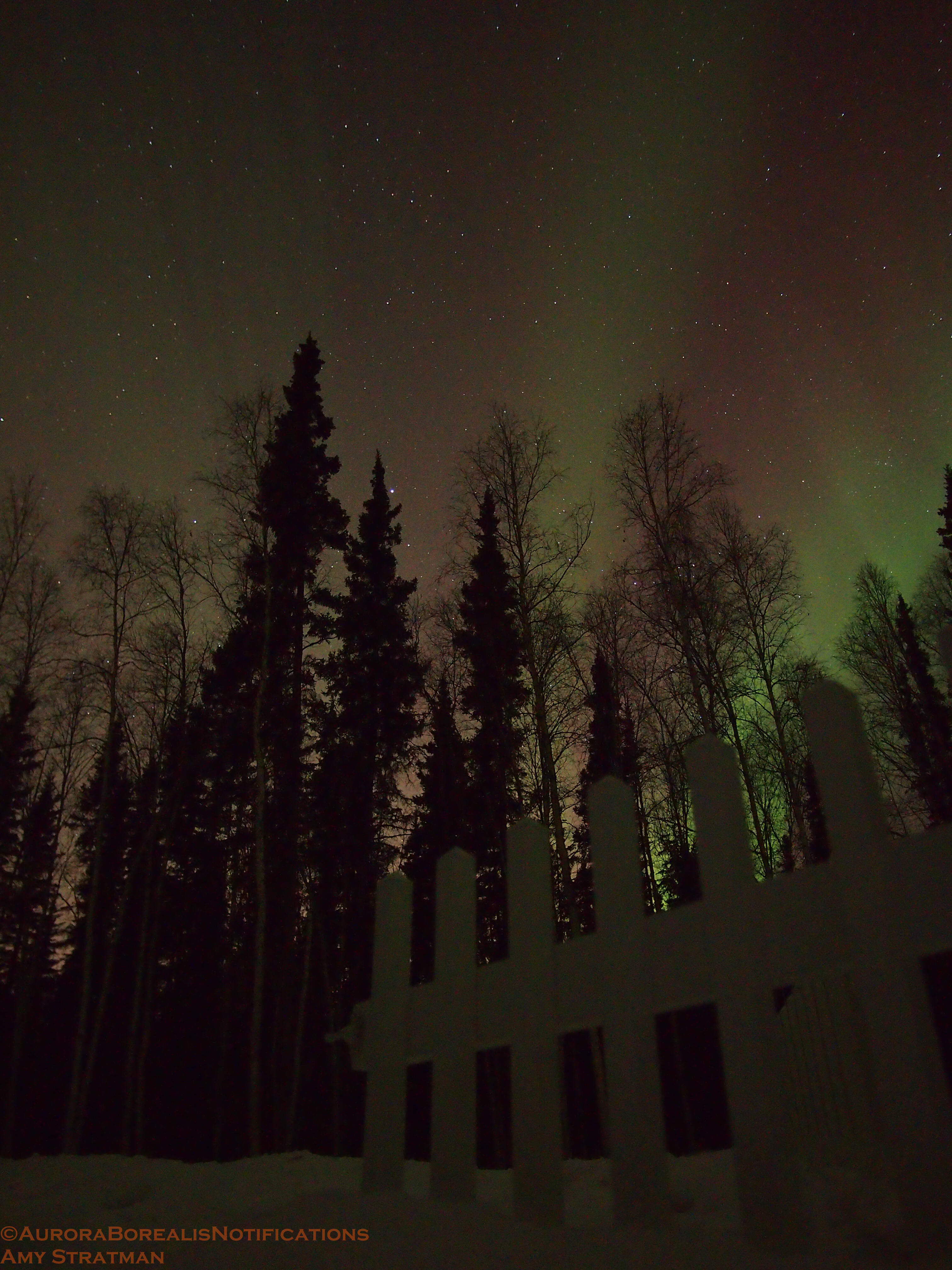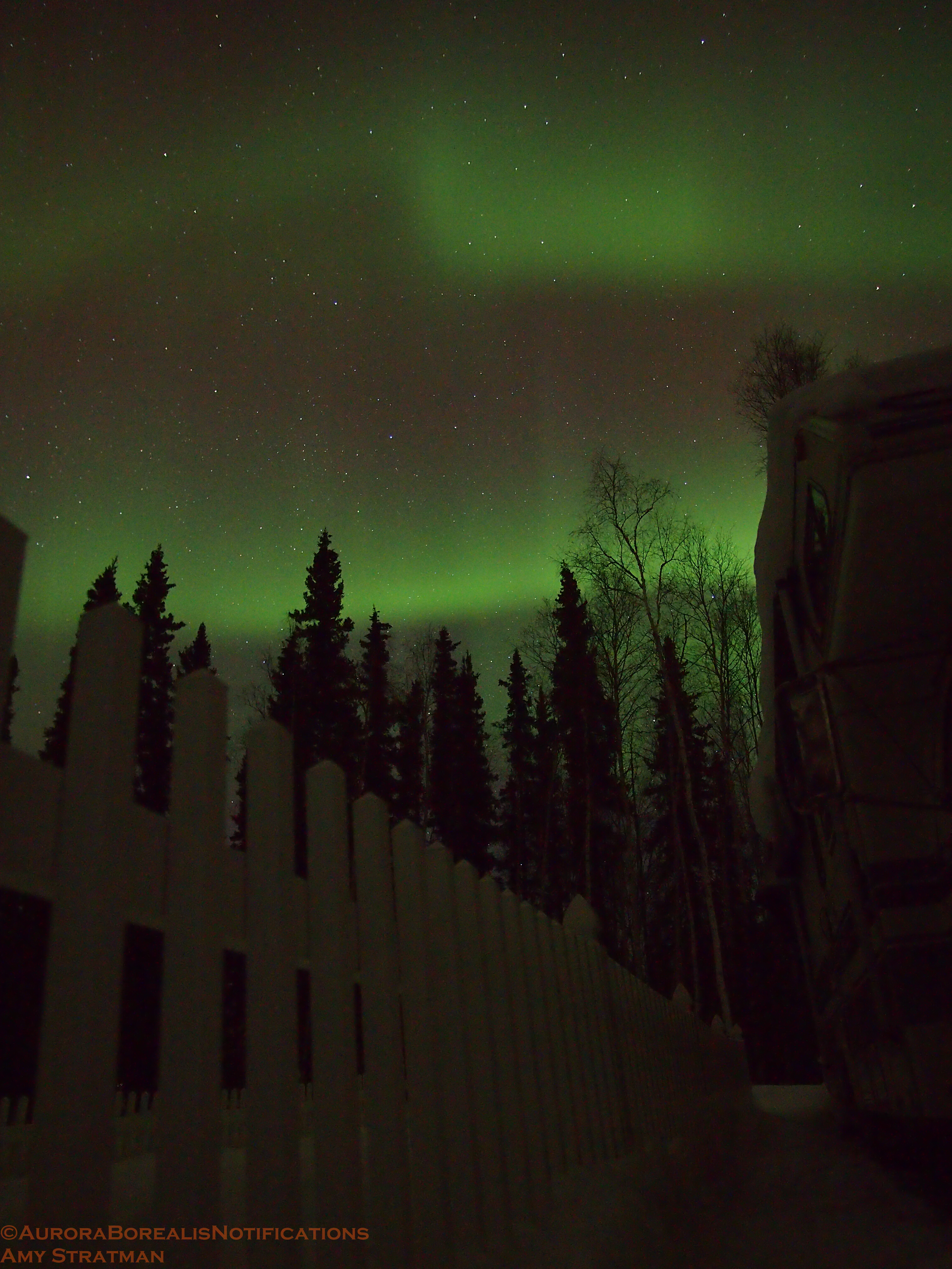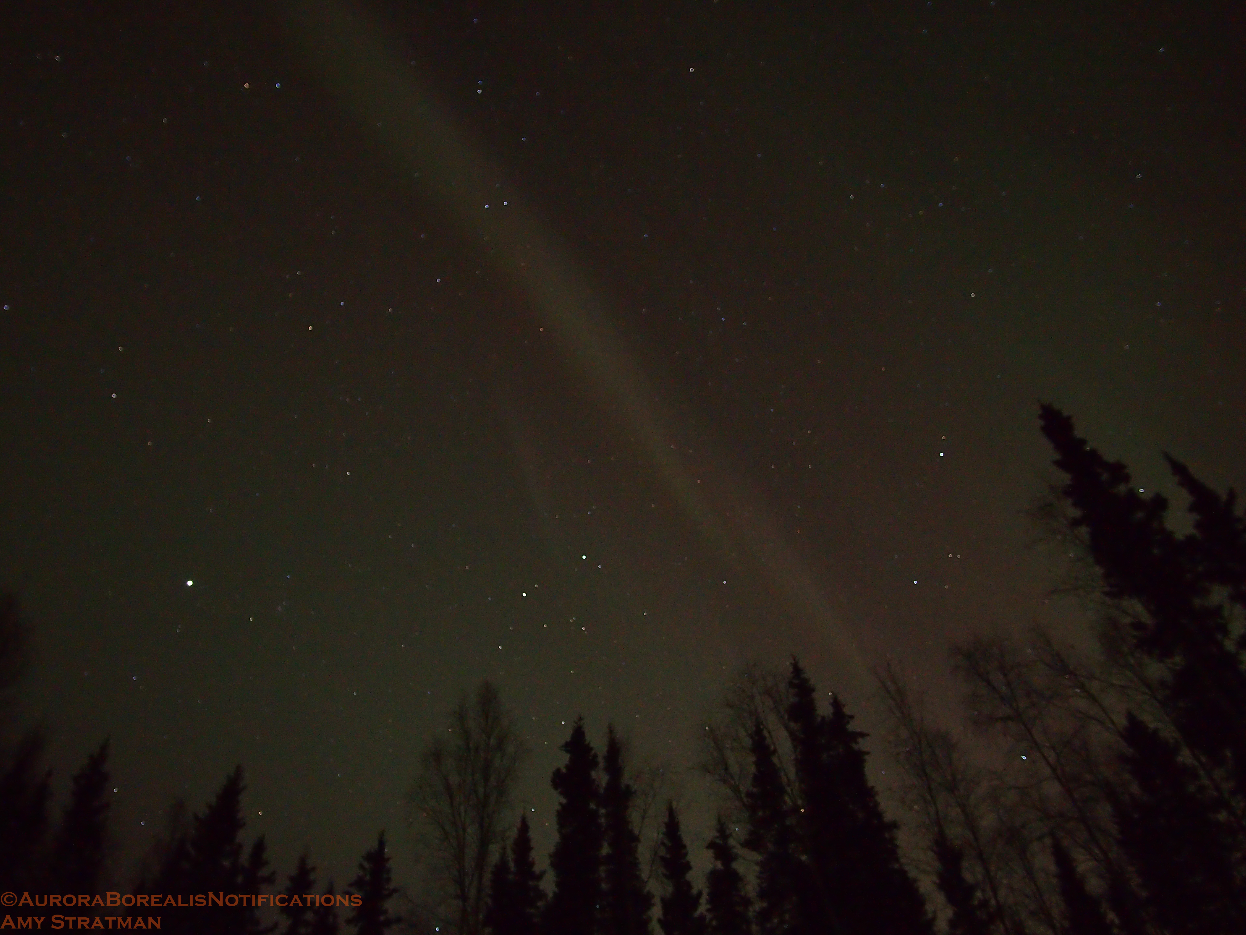The lights came out yet again last night in Alaska. They were faint at times, but gorgeous with the sliver of a moon setting. The green band brightened for just long enough to give aurora watchers a good show.