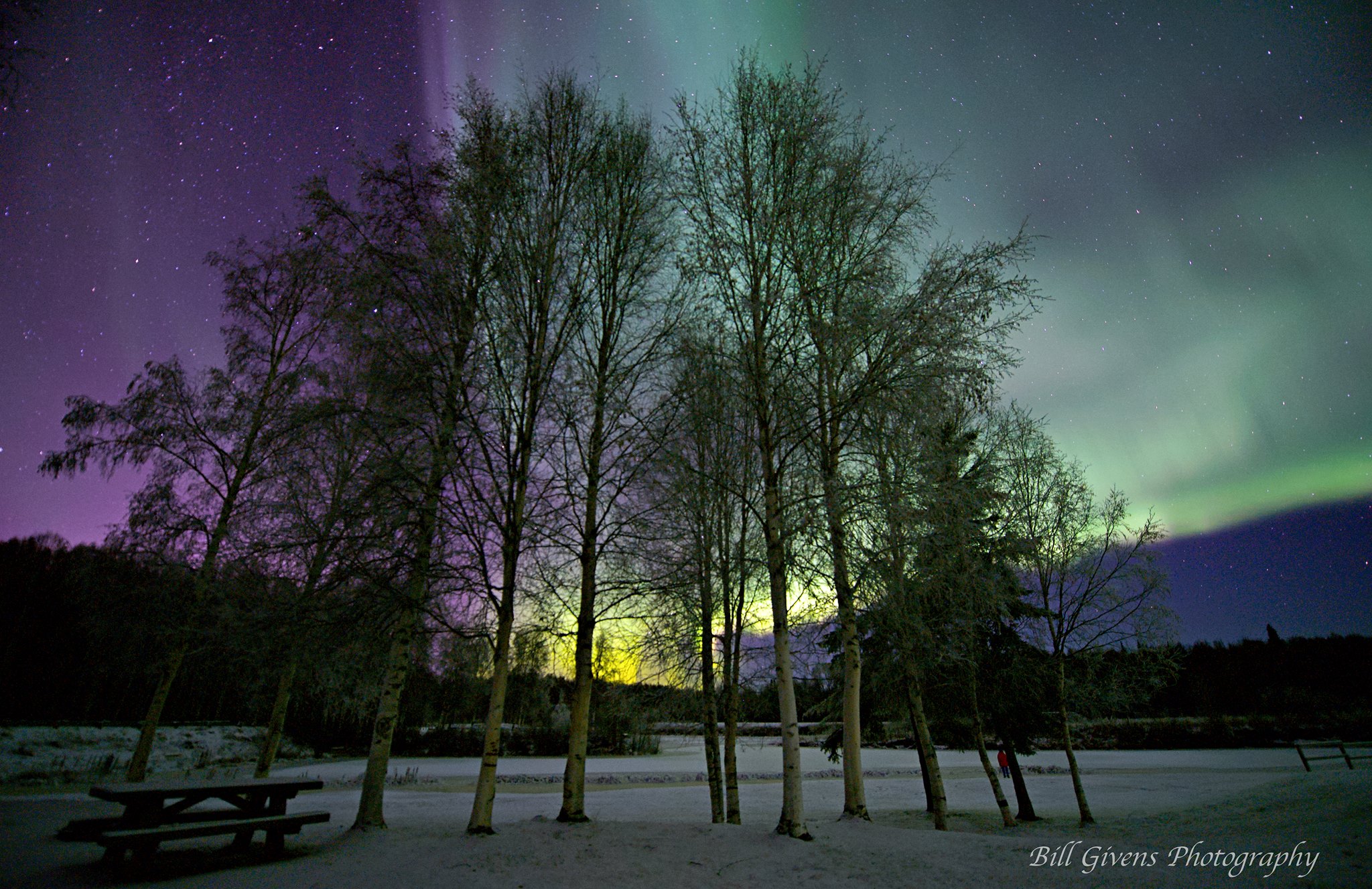 Last night the aurora lasted from sunset to sunrise, and Alaskans saw a great show. Here are a few photos from around the state. We had a high of Kp 6 with excellent solar winds and great weather also!