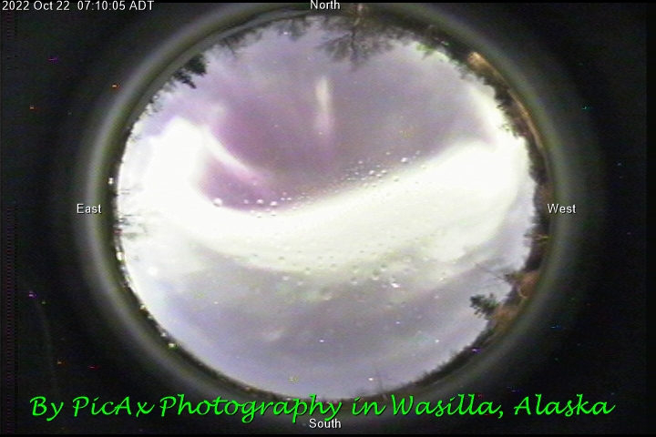 Β The webcam was located on top of a roof from the Wasilla/Palmer area in Alaska. It points straight up into the sky. Sometimes this cam is turned off during the day or during overcast weather to save on bandwidth.